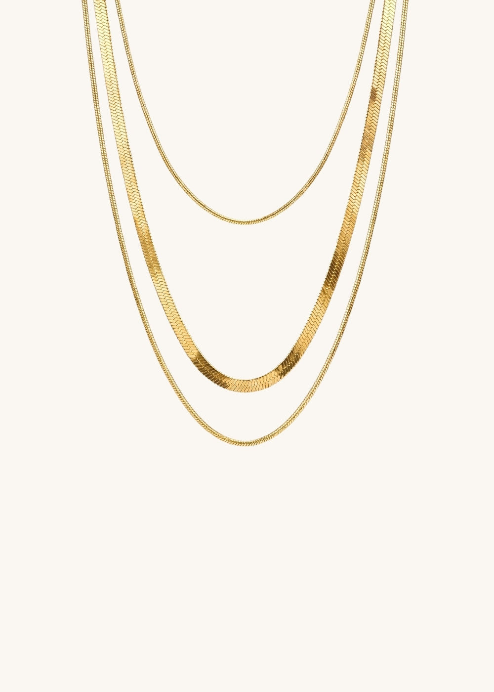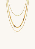 Elevate your style with our Astor layered necklace, featuring an intricately designed snake chain, three layered chain seamlessly integrated with the each other.