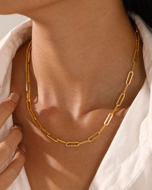 Elevate your style effortlessly with our sleek, minimalist Paperclip Chain Necklace. Designed for versatility and elegance, this piece brings a modern twist to timeless jewelry. Each link of the chain is crafted with precision, creating a graceful flow that drapes beautifully on your neckline.